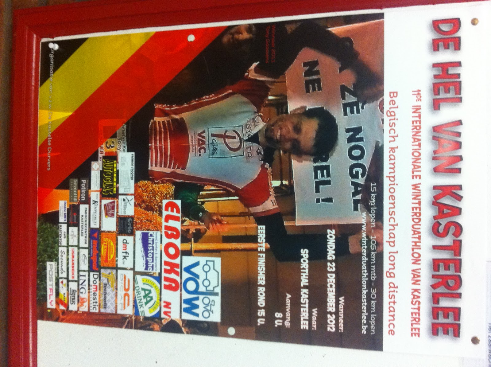 Je verzint het niet maar de Belgen noemen hun Belgische Kampioenschap Winterduathlon Long Distance: de Hel van Kasterlee. Ze geven op hun website aan dat het zonder meer de allerzwaarste duathlon ter wereld is. Kijk, en dat triggert mij nou – dat verwacht je toch niet in België Nota bene bij Kasterlee waar geen berg of fatsoenlijke heuvel te bekennen is. Toegegeven de afstanden liegen er niet om, 15KM rennen, 110KM ATBen en dan 30KM rennen. Dat allemaal op een van de kortere dagen van het jaar – dit jaar op 23 december.